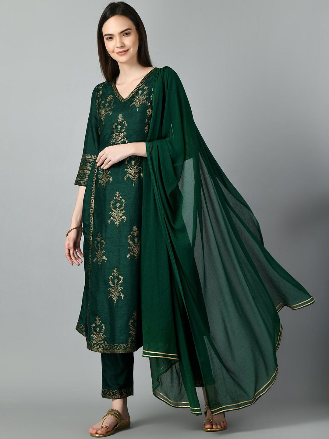 KALINI Ethnic Motifs Printed Kurta & Trousers With Dupatta