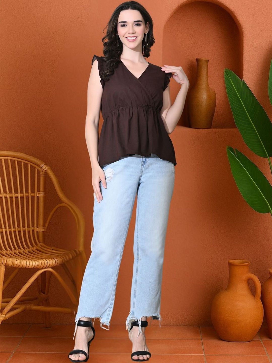 KALINI Flutter Sleeve Cotton Empire Top quantity