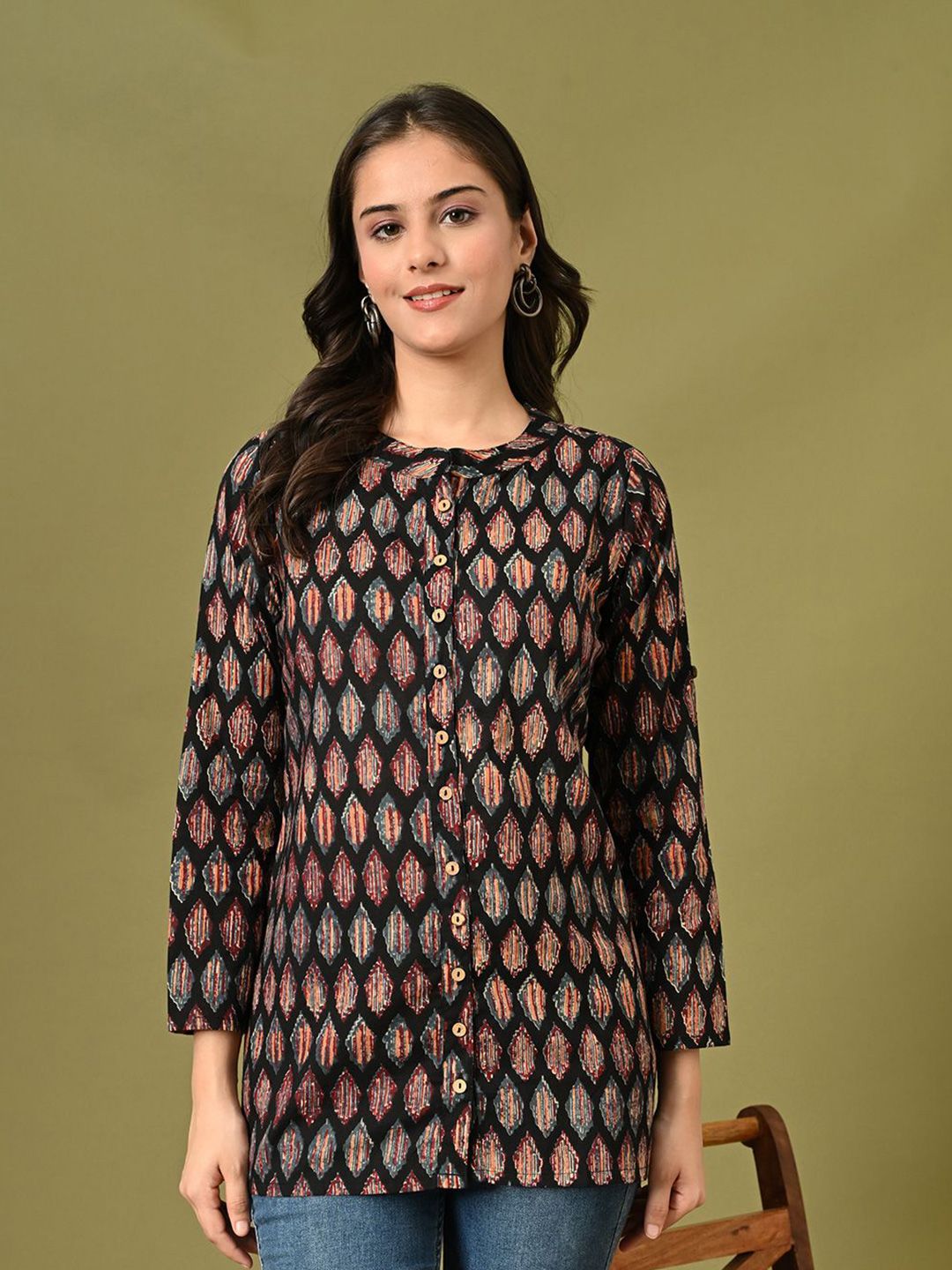 KALINI Mandarin Collar Printed Tunic