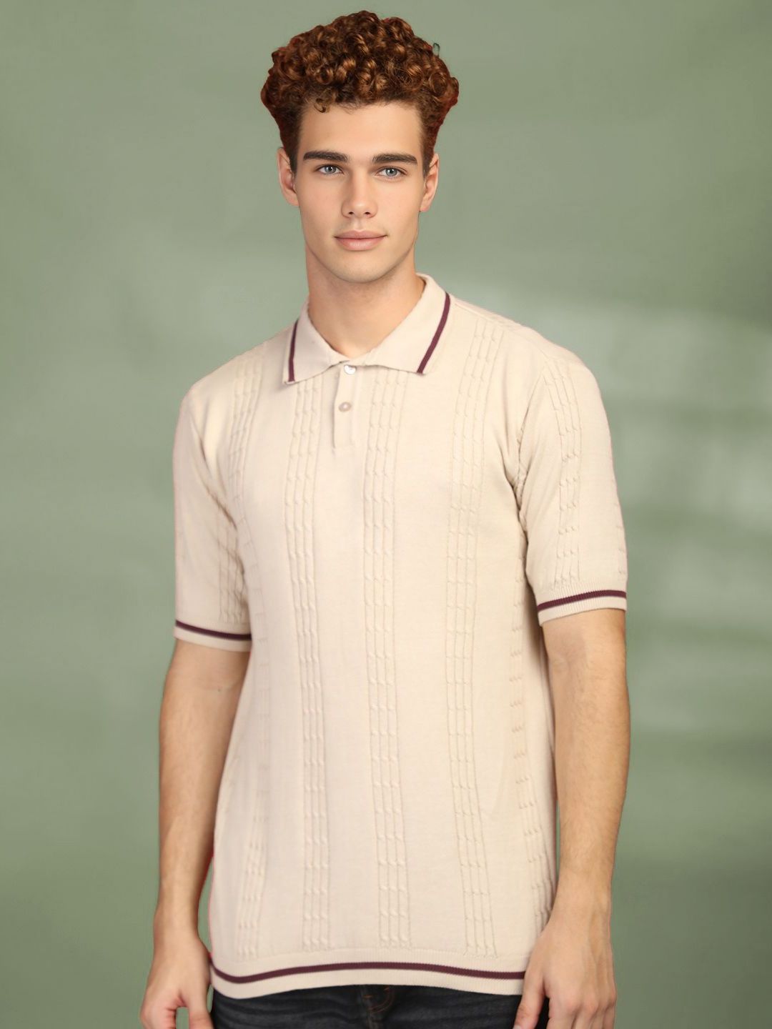 Mast & Harbour Men Self Design Polo Collar Cotton T-shirt