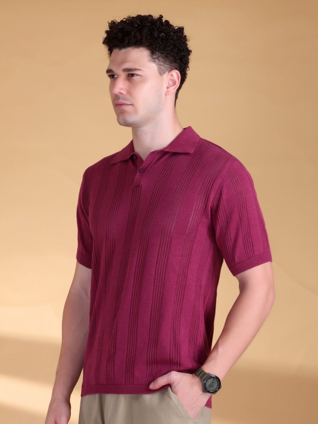 Mast & Harbour Men Self Design Polo Collar Cotton T-shirt