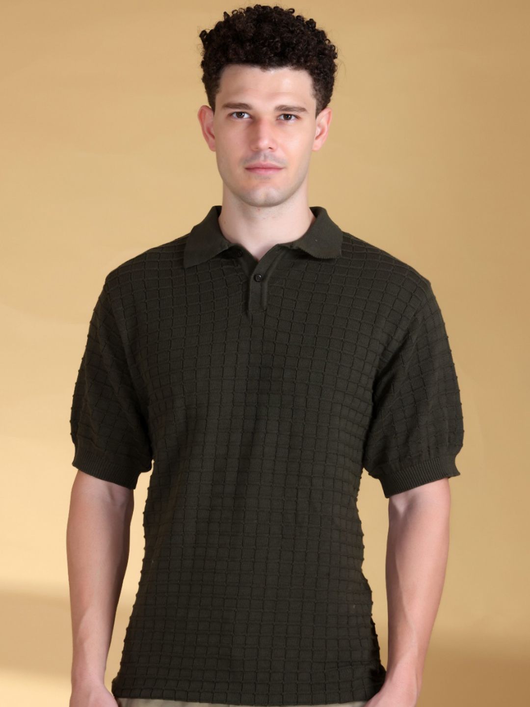 Mast & Harbour Men Self Design Polo Collar Cotton T-shirt