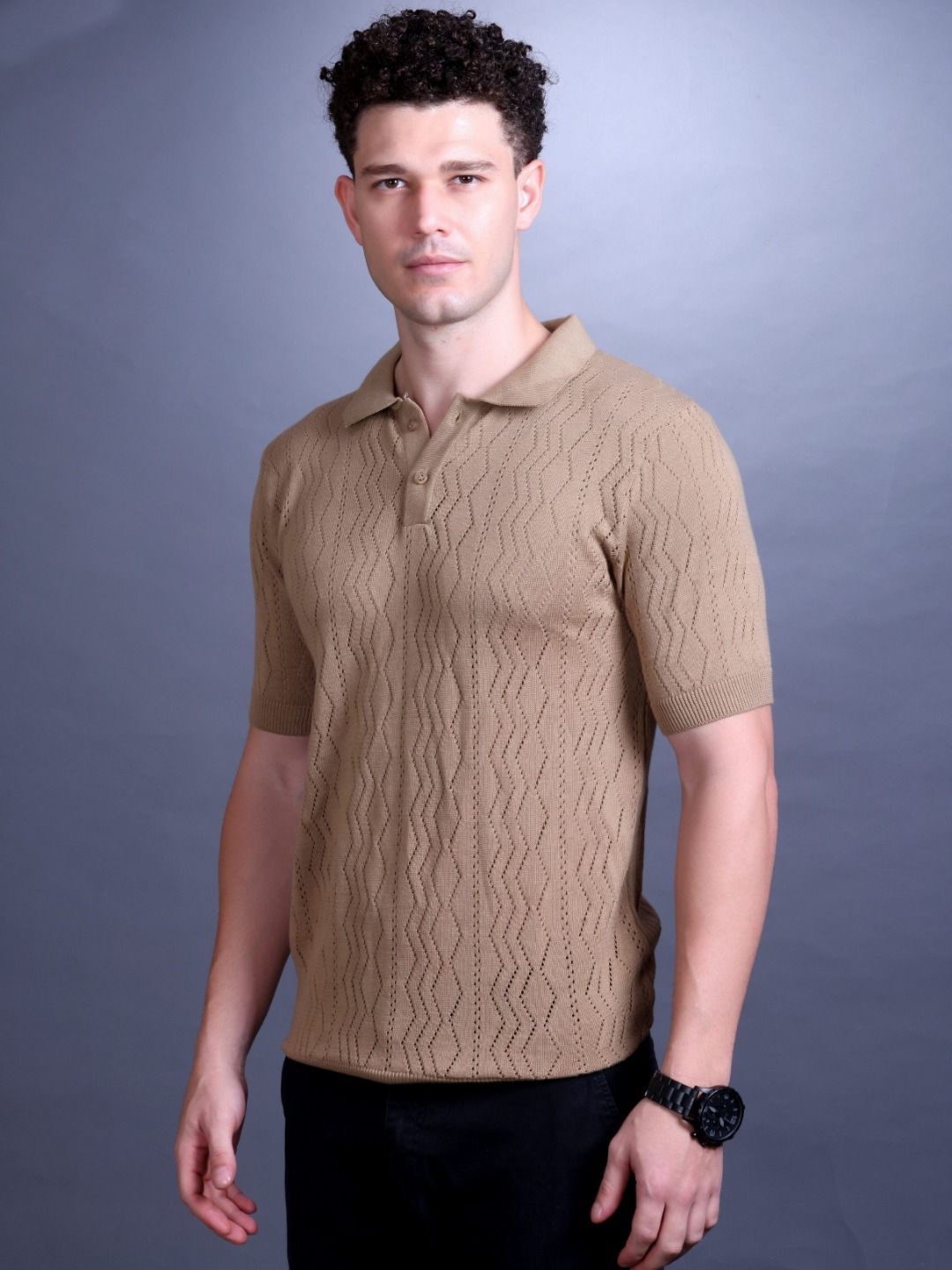 Mast & Harbour Men Self Design Polo Collar Cotton T-shirt