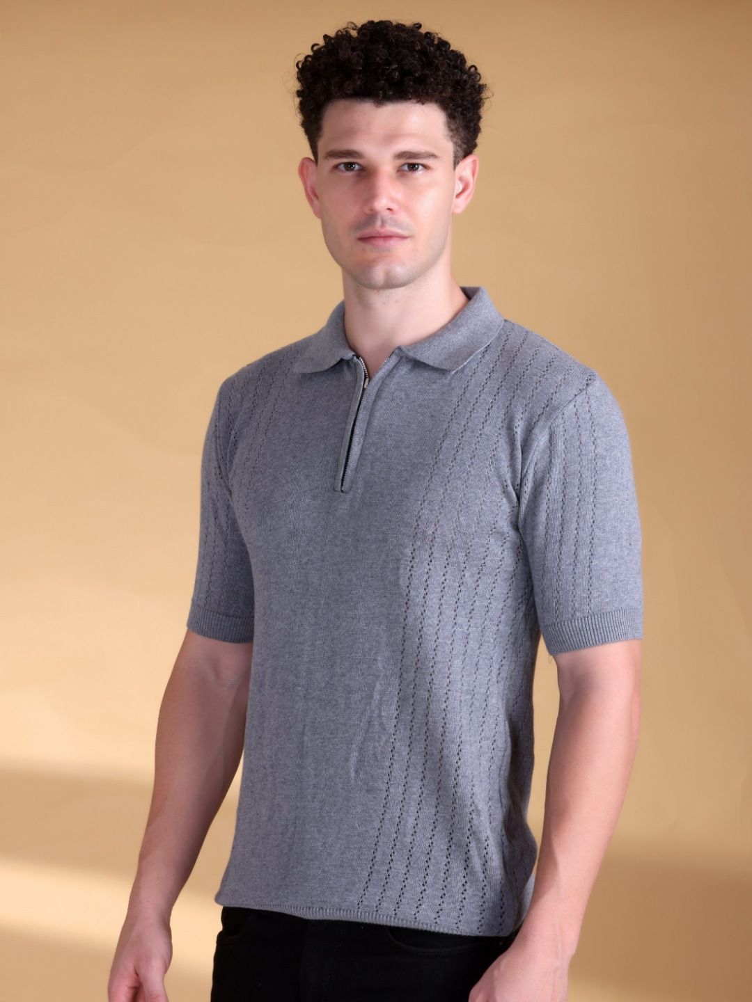 Mast & Harbour Men Self Design Polo Collar Cotton T-shirt