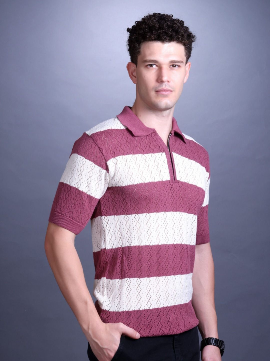 Mast & Harbour Men Self Design Polo Collar Pure Cotton T-shirt