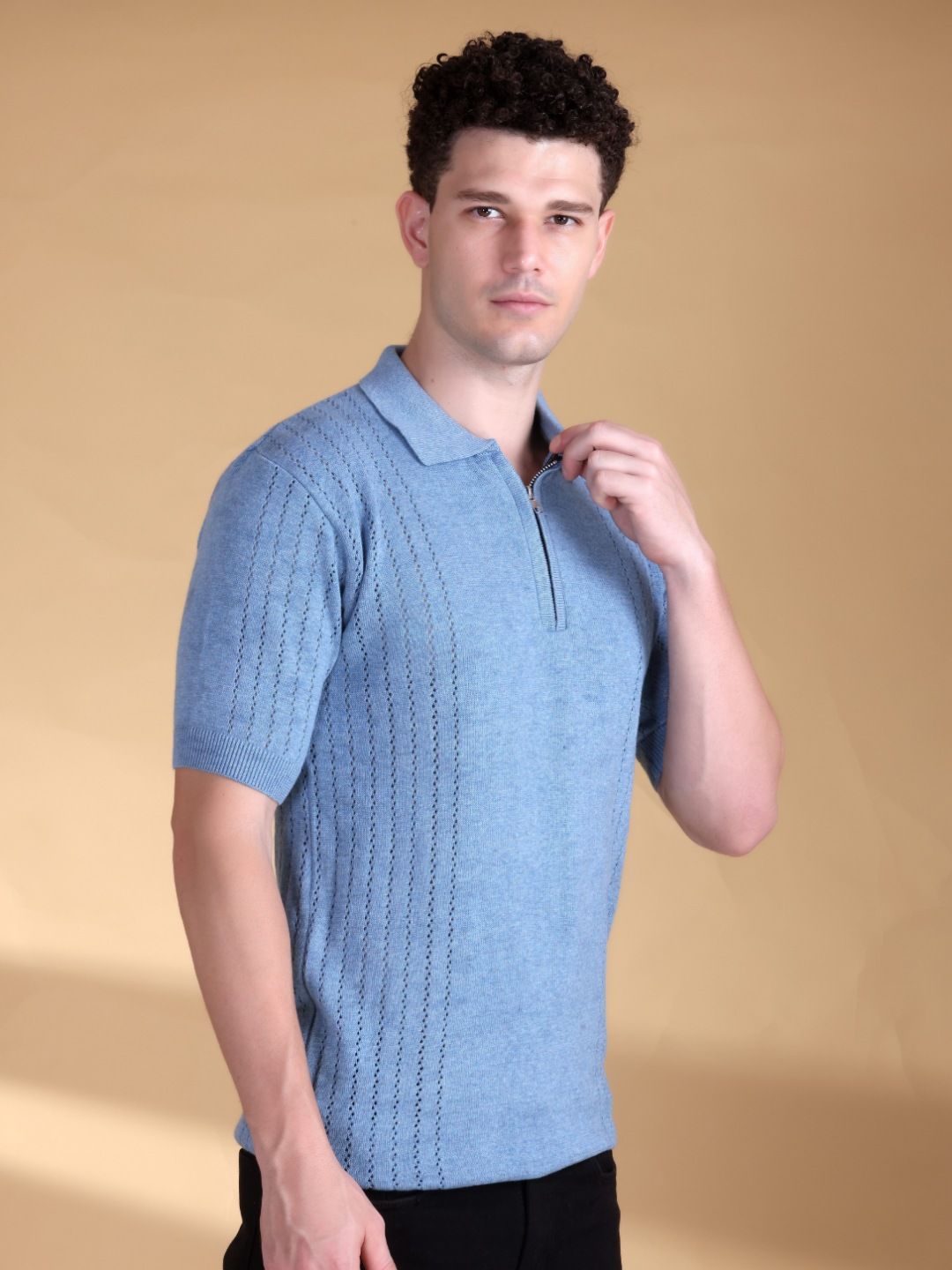 Mast & Harbour Self Design Polo Collar Short Sleeves Pure Cotton T-shirt