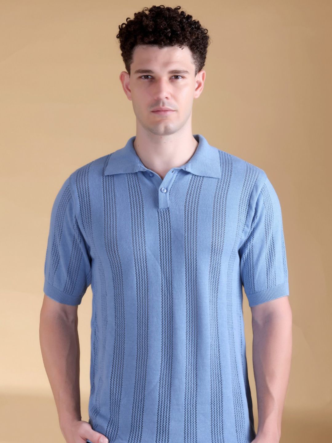 Mast & Harbour Self Design Polo Collar Short Sleeves Pure Cotton T-shirt