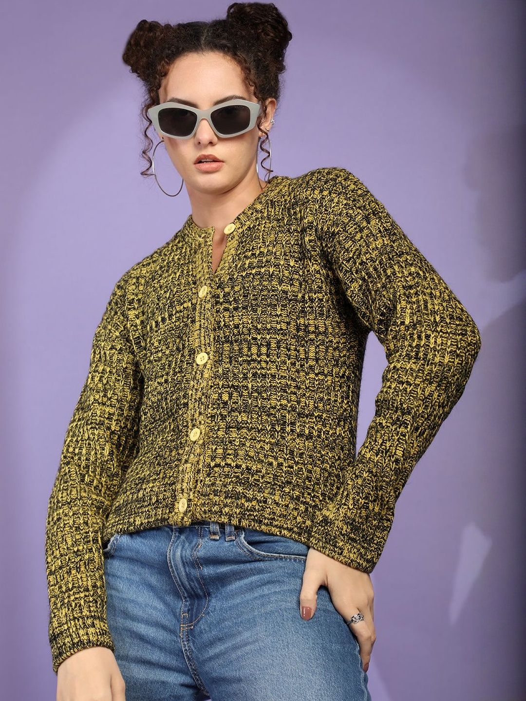 Roadster Women Lemon Woollen Crop Cardigan quantity