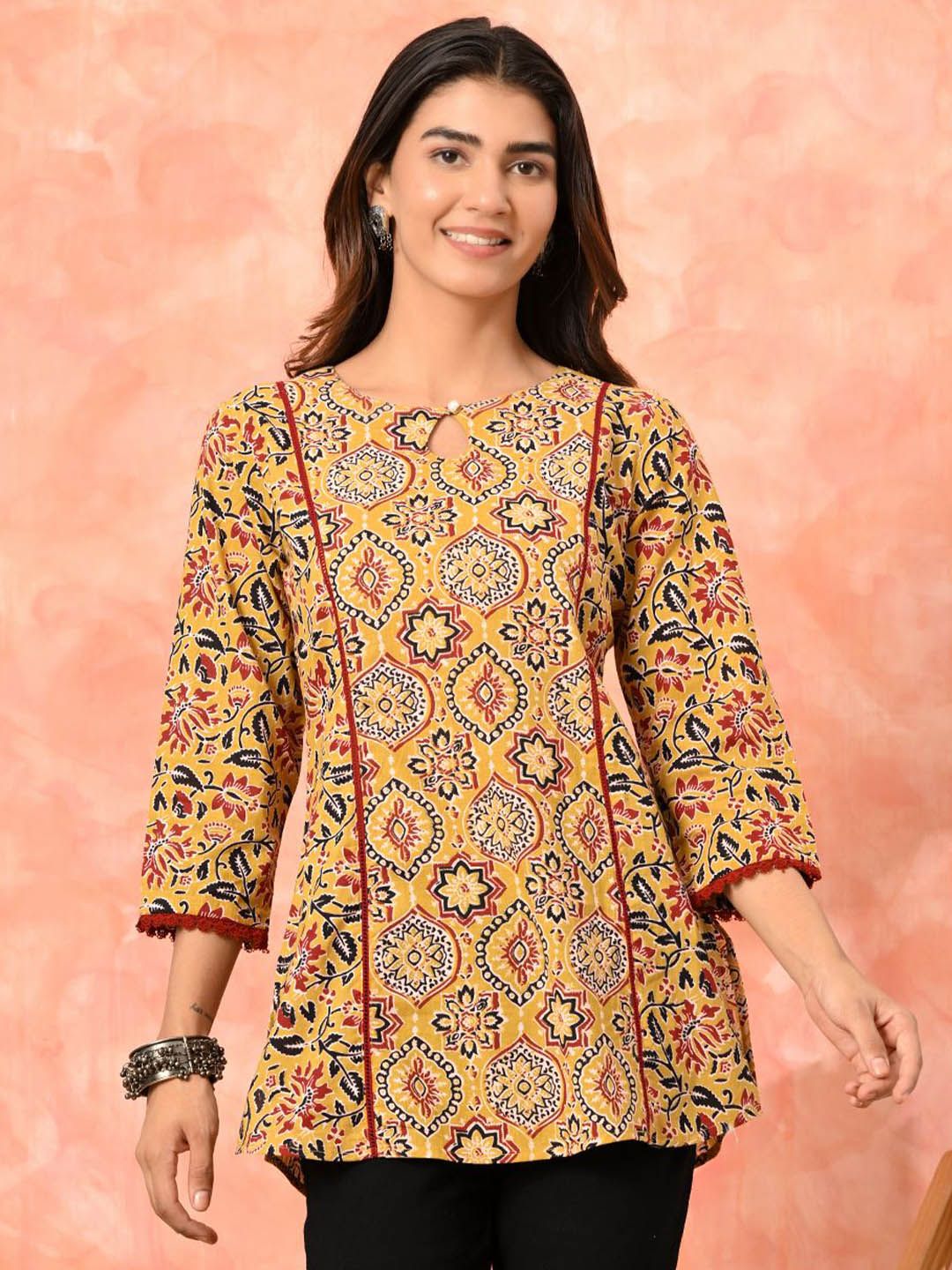 Sangria Women Ethnic Printed Cotton Round Neck Tunic
