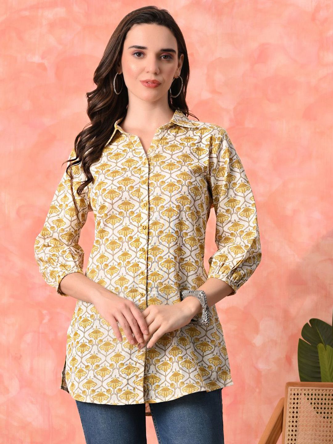 Sangria Women Printed Pure Cotton Shirt Collar Tunic