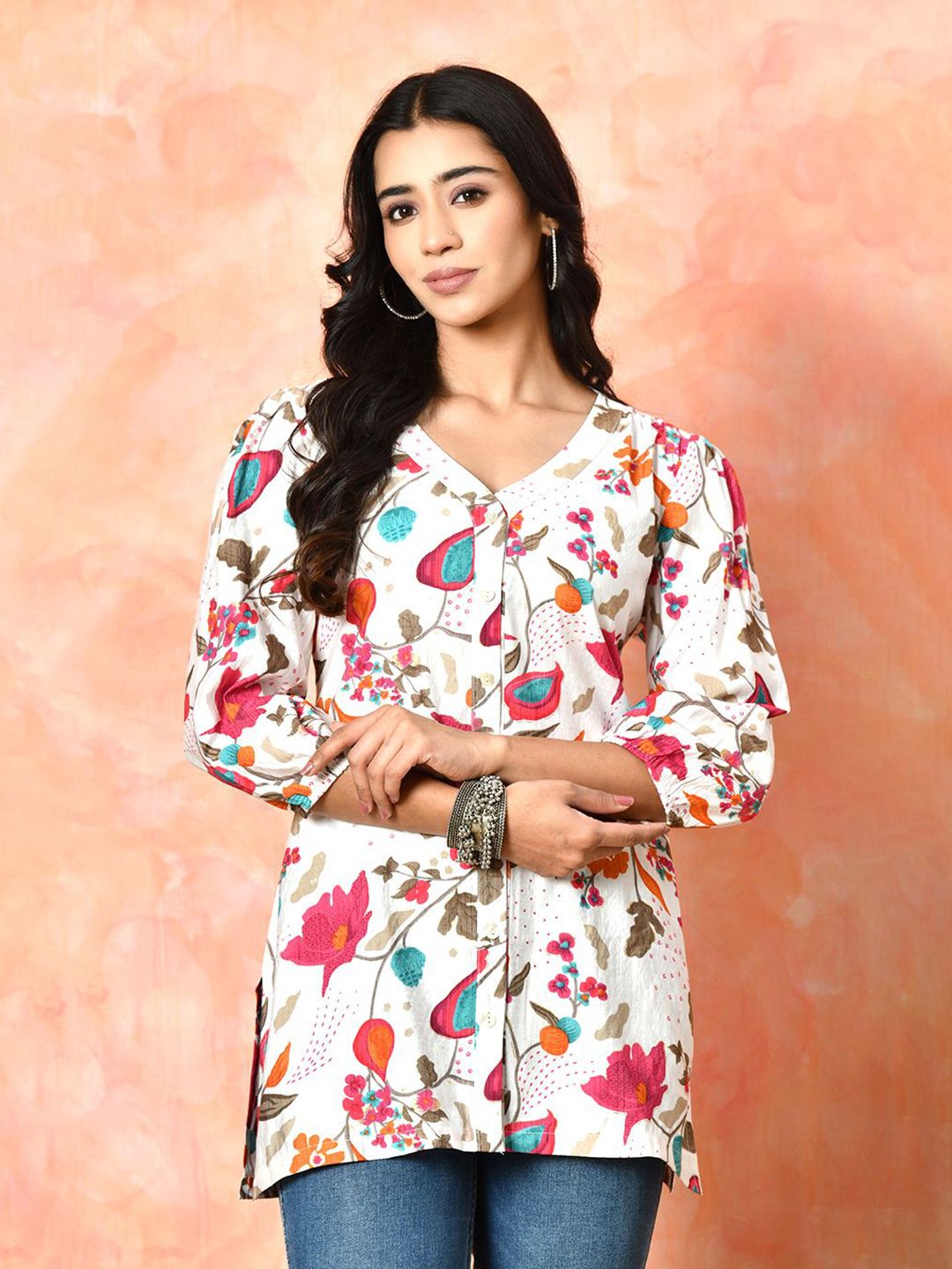 Sangria Women Printed V Neck Tunic