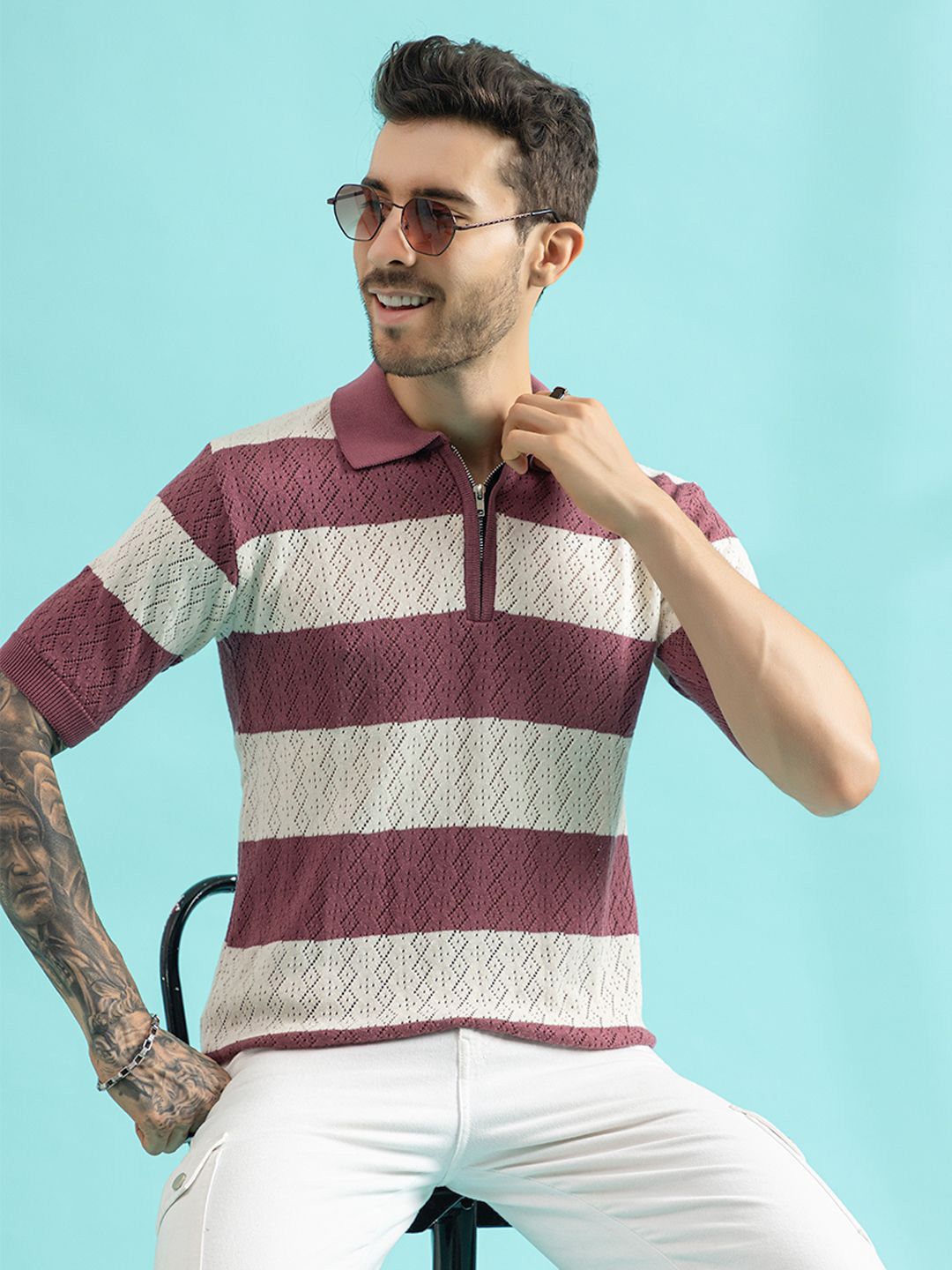 The Roadster Lifestyle Co. Striped Pure Cotton Polo Collar Regular Fit Casual T-Shirt