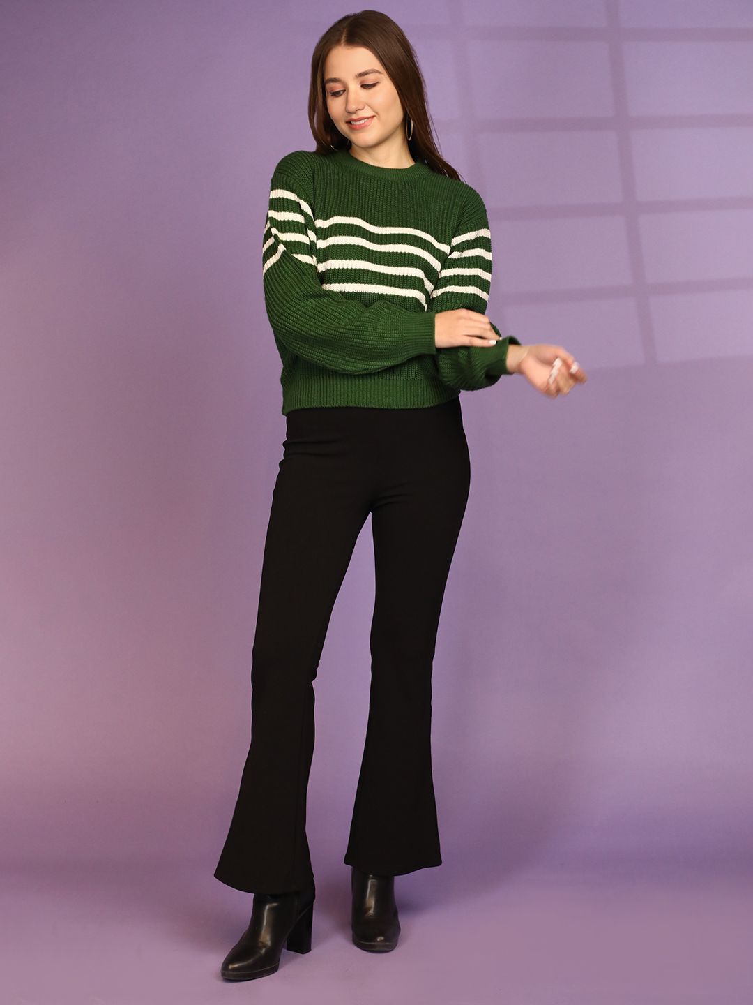 The Roadster Lifestyle Co Striped Woolen Round Neck Pullover Sweater